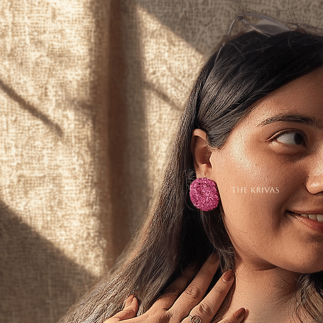 The Pink Pulse earrings make a bold statement with their vibrant pink circle beads, creating a striking hoop design. These playful, party-ready hoops add a burst of color and energy to any outfit. Perfect for special occasions or a night out, they bring a chic yet fun vibe to your style. With their contemporary design and vibrant hue, Pink Pulse effortlessly elevates your look with a touch of youthful elegance.